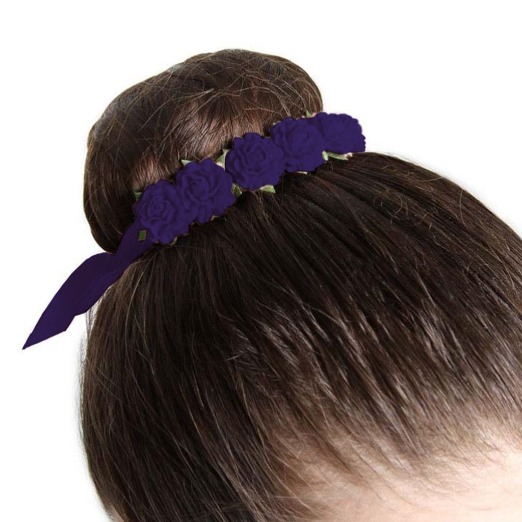 A beautiful handcrafted row of flowers delicately affixed onto a length of satin ribbon. A gorgeous addition to a ballet bun suitable for class, rehearsal and performance.
