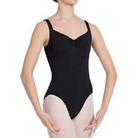 Introducing the Ondina leotard from the Overture Collection, a classical style leotard with a flattering wide strap for optimum support and strength through the garment. The sweetheart neckline is accentuated with an elegant pinch pleat detail that sits flush to the chest, paired with an empire and princess seam providing a flattering fit with ultimate comfort. This garment comes fully front lined for a smooth and modest fit, with a simple scoop back that is high enough to allow for an undergarment if necessary.