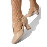 The Shanel Character Shoe exudes sophistication with its 100% leather upper and suede sole. Featuring a Broadway-style 3" contoured heel with a leather top lift, this shoe offers both style and stability. The full-grain leather and rounded toe box provide comfort and a perfect fit, while the cushioned insole molds to the foot for added support. A metallic light gold buckle adds a touch of elegance, and the soft suede sole enhances foot articulation. Available in adult sizes only.