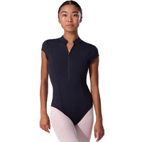 The Short Sleeve Princess Leotard combines elegance and fun in one stylish piece! With a sleek mock neck and short sleeves, it’s perfect for both comfort and flair. The zipper front makes it easy to slip on, while the princess seams and lace panels add a beautiful, feminine touch. The playful triangle cut-out at the back brings a unique twist, and the ballet leg line allows for total freedom to move.