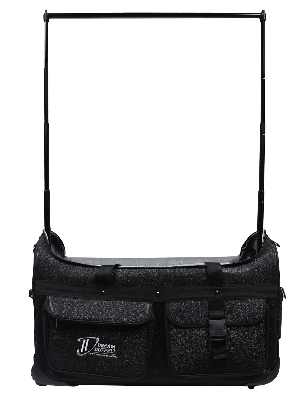Are you looking for the ULTIMATE dance bag for dance competitions? You’ve found it! The Dancer’s Dream Duffel. Our rolling dance bag is an essential addition to any dance competition — with everything from a Patent Pending one-touch telescoping costume rack, garment bag and accessory box, to a folding stool! You get smart, convenient storage and a handy competition garment rack all in one.