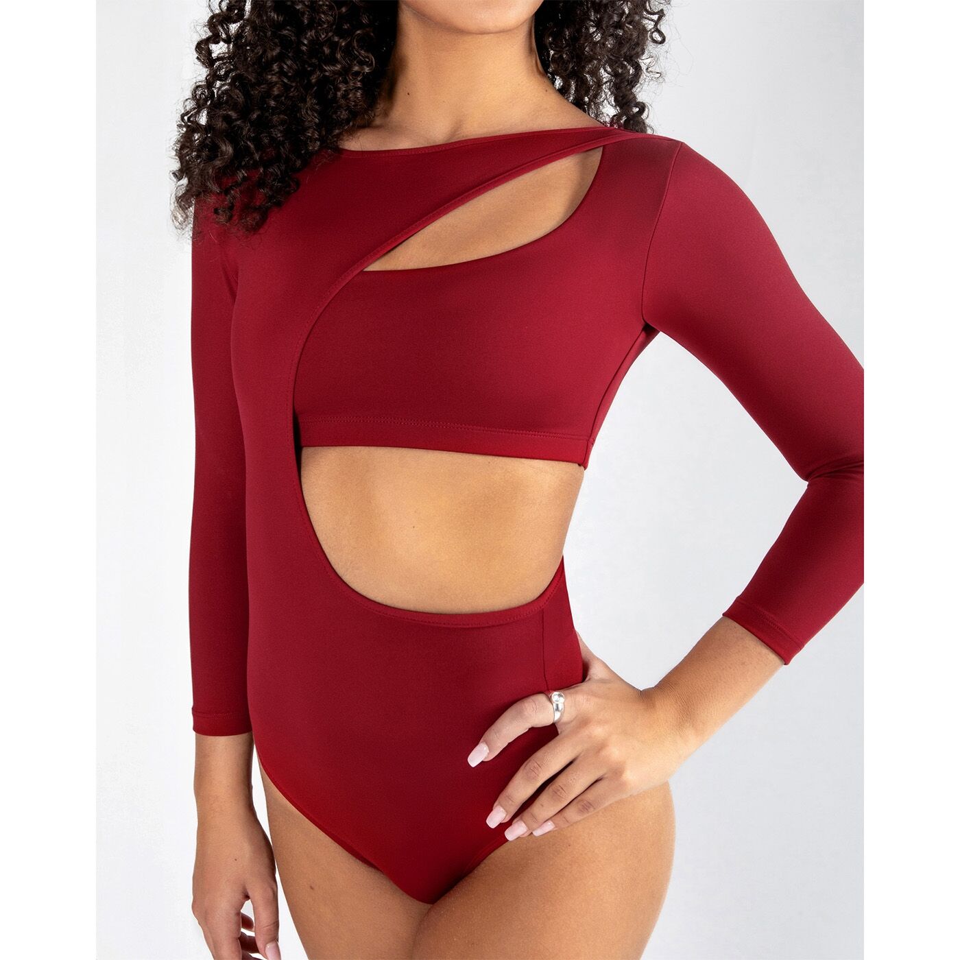 Energetiks Xenia 3/4 Sleeve Leotard; Adult Small; Crimson Red