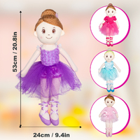 Made for every aspiring ballerina, this plush ballet doll comes with a soft 3 layered tulle skirt, ballet shoes with ribbon and a floral headpiece in her bun. She is soft and cuddly and will make the perfect companion for every ballerina.