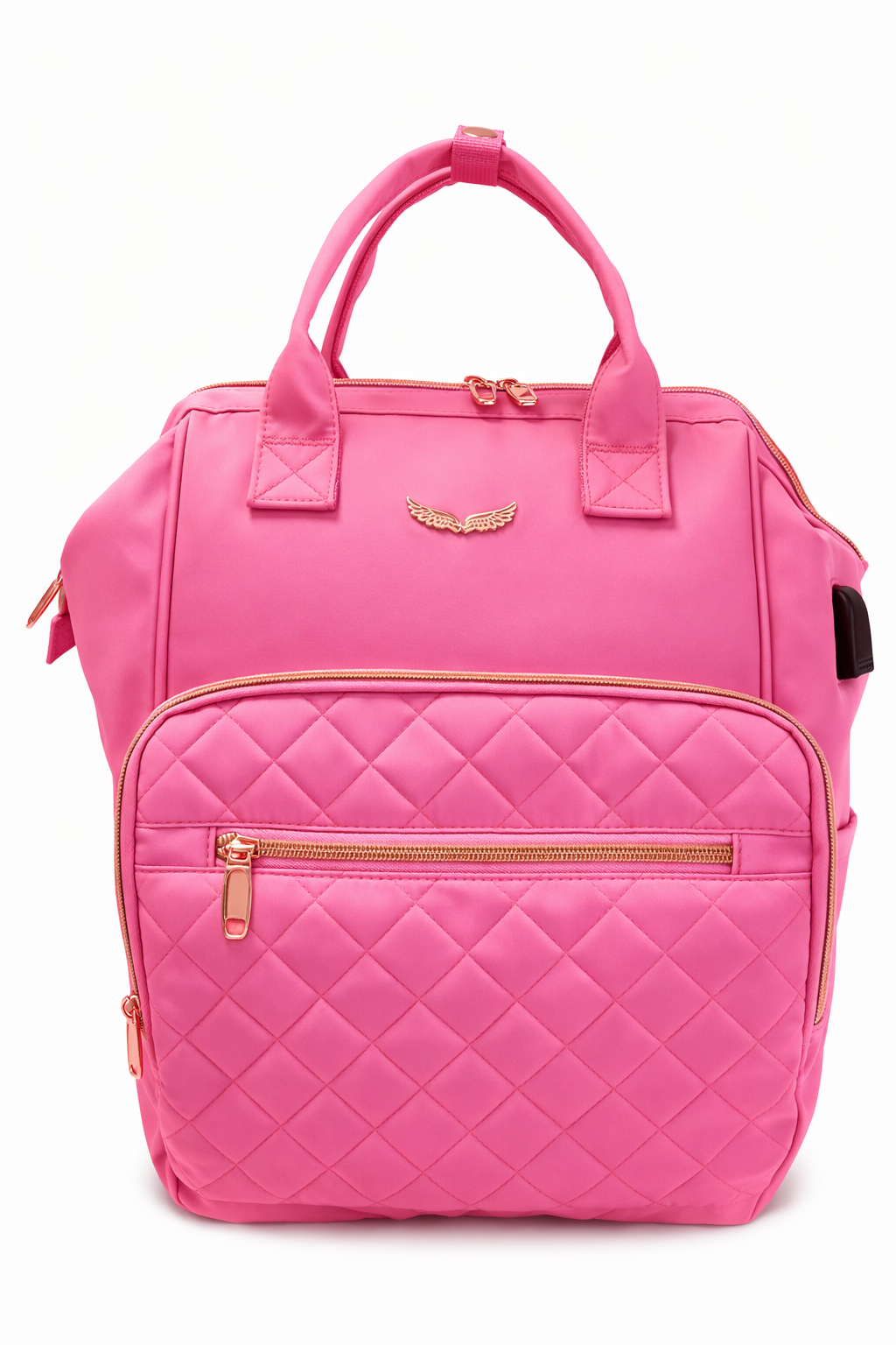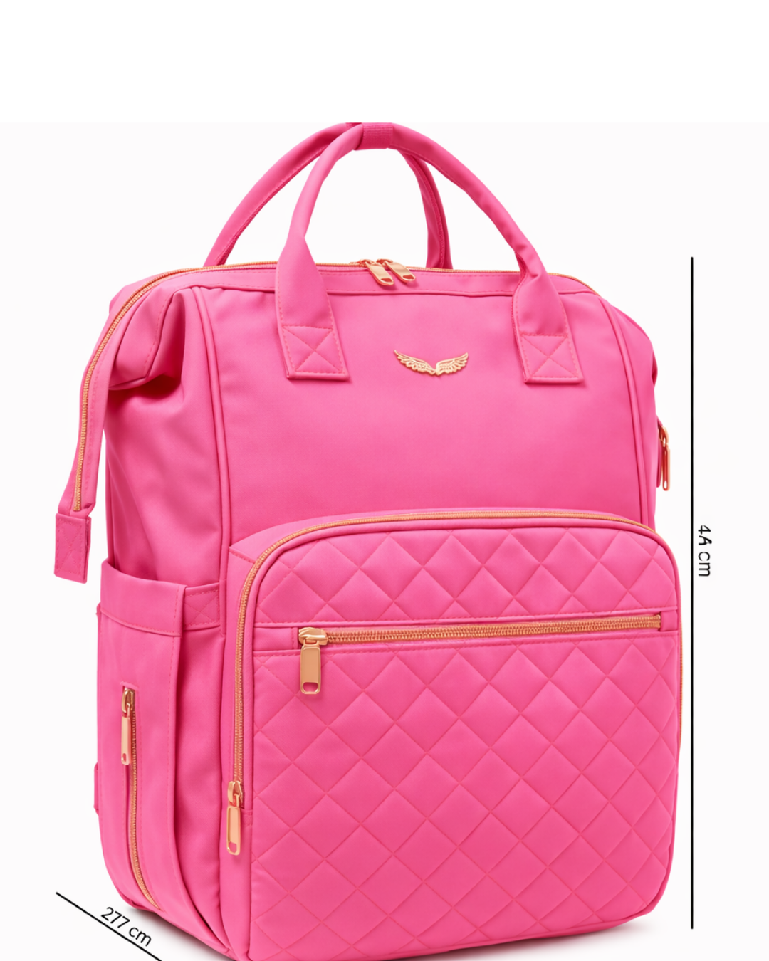 It has a streamlined and modern design and features stand out rose gold zippers. This backpack has mulitple compartments, including the spacious main compartment with wide top opening for larger items; a front zippered pocket for quick access to smaller items and internal pockets to help secure items such as notebooks, phone and personal belongings.