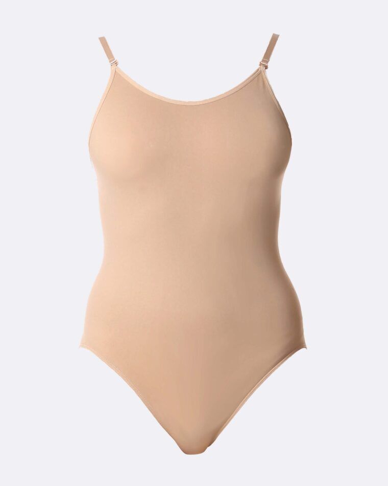 Eeach body stocking comes with adjustable shoulder straps both flesh and clear.