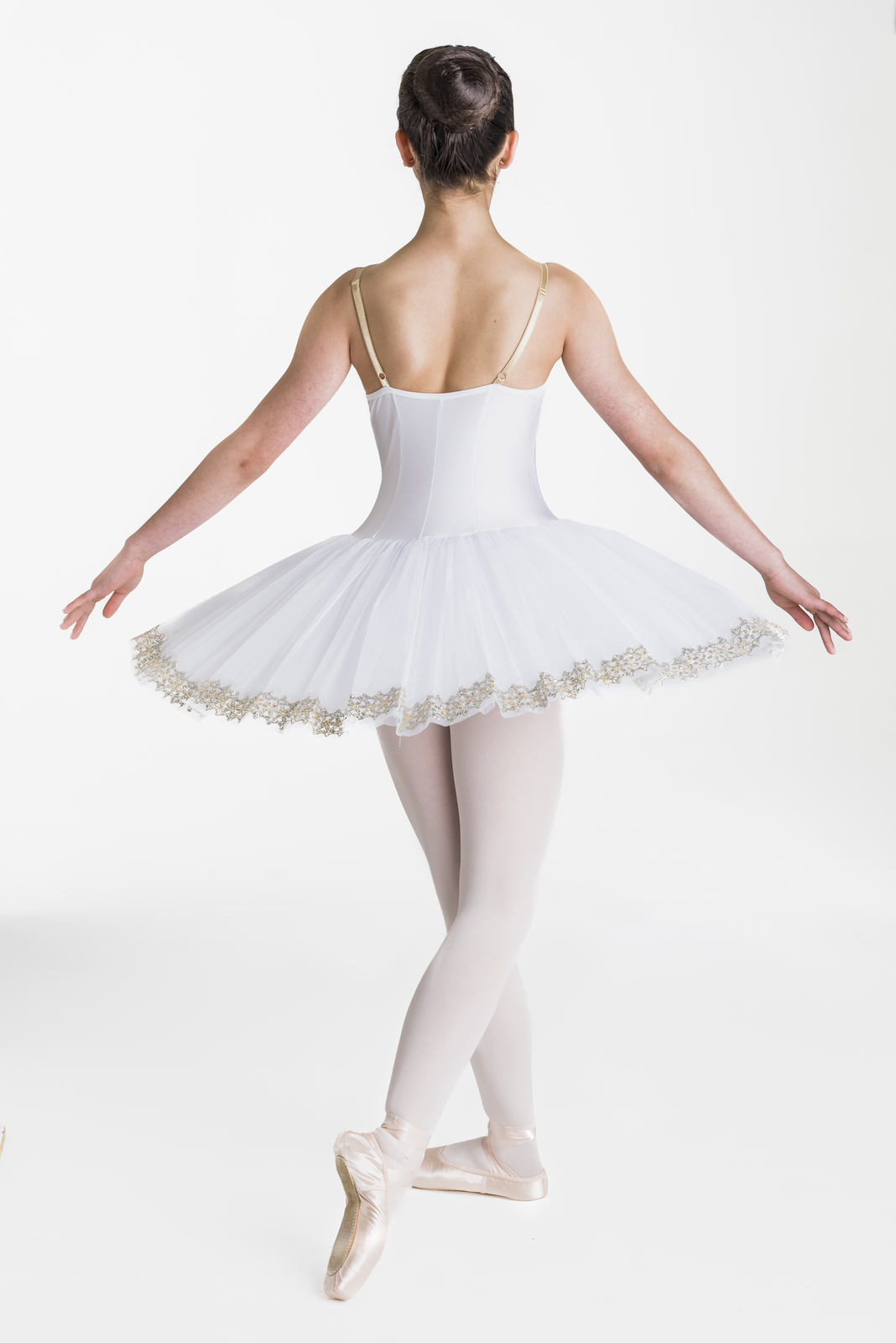 The Fairytale Tutu is a beautiful standard shape ballet tutu with sparkling lace embellishment on the skirt and bodice.