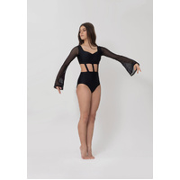 Step into the spotlight with elegance and strength in the Isobel Leotard. Designed for lyrical and contemporary dancers, this striking piece blends drama and sophistication with effortless wearability. The flowing bell sleeves create a sense of movement with every gesture, while the daring bare midriff adds modern edge. A corset-inspired strap detail frames the bodice, giving this leotard a structured, fashion-forward finish. The criss cross straps at the back finish this visually mesmerising dance costume.