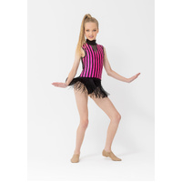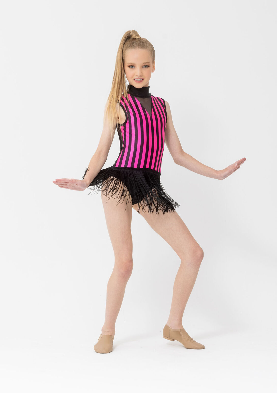 The Melody Leotard exudes sophistication and sass. Eye catching stripes combined with a fringed skirt will captivate any audience.