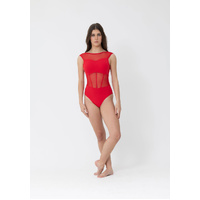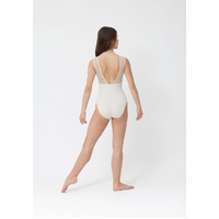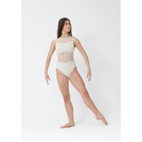 Sophisticated and versatile, the Nina Leotard is designed to captivate both on stage and in the studio. Featuring a chic boat neckline and an elegant open back, this corset-inspired design combines strength with grace. Sheer mesh panels contour the sides and curve inward to meet a flattering high-waisted brief, enhancing your every movement.